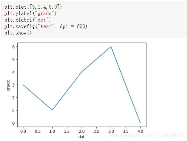 如下代码实例:如果在第一行代码 plt.plot() 中只输入一个数组或者列表时,默认将该数组设置为 y 的数据,x 轴用以索引。命令 plt.savefig() 是将绘制的图形保存为 png 的格式。